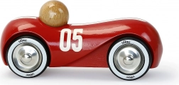 Stylowy czerwony samochód wyścigowy z lakierowanego drewna z metalowymi, gumowanymi kołami ucieszy małych kierowców i miłośników designu. Nadaje się do zabawy i jako dekoracja. Wyprodukowano we Francji, wyróżnia się wysoką jakością wykonania, wytrzymałymi kołami oraz ponadczasowym vintage designem.