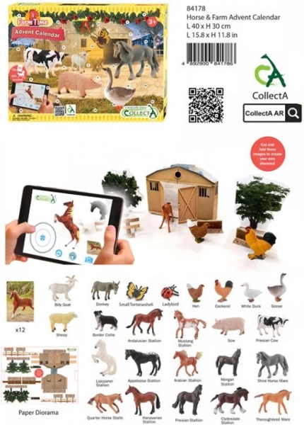 Kalendarz adwentowy CollectA Farma i konie uprzyjemni codzienne oczekiwanie na Boże Narodzenie. Od 1 do 24 grudnia codziennie odkryjesz nowe zwierzątko z farmy: