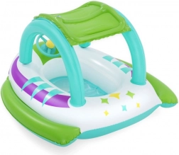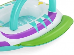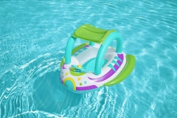 Dzięki stabilnej konstrukcji z wytrzymałego PVC i wygodnym uchwytom dzieci mogą bezpiecznie pływać w płytkiej wodzie pod nadzorem osoby dorosłej. Kierownica z klaksonem dodaje interaktywnej zabawy i rozwija motorykę. Kolorowa „kosmiczna” grafika przyciąga wzrok i pobudza wyobraźnię podczas wodnych harców.