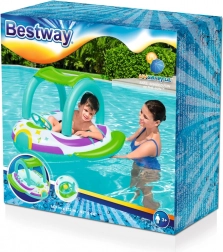 Zabawny nadmuchiwany ponton BESTWAY Space Splash dla dzieci od 3 lat oferuje bezpieczną zabawę w wodzie, odpinany daszek z ochroną UV, dmuchane dno z okienkiem peek‑a‑boo oraz kierownicę z klaksonem. Stylowy „kosmiczny” design i wygodne uchwyty zapewnią godziny radości w basenie, nad jeziorem i nad morzem.