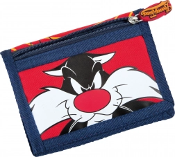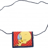 Ten stylowy portfel ucieszy wszystkich małych fanów serialu LOONEY TUNES. W atrakcyjnym wzornictwie z postaciami Tweety i Sylwestra oferuje bezpieczne przechowywanie drobnych monet i banknotów, a jednocześnie jest łatwy do noszenia dzięki smyczy oraz kółku do przypięcia.