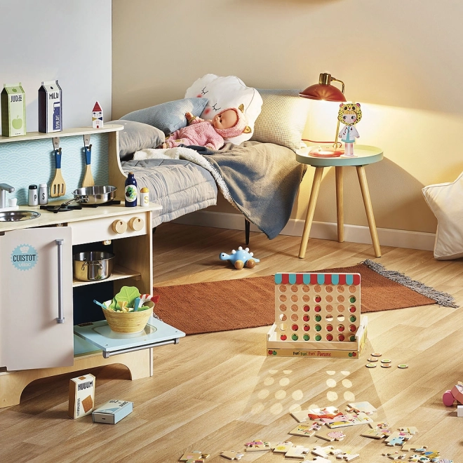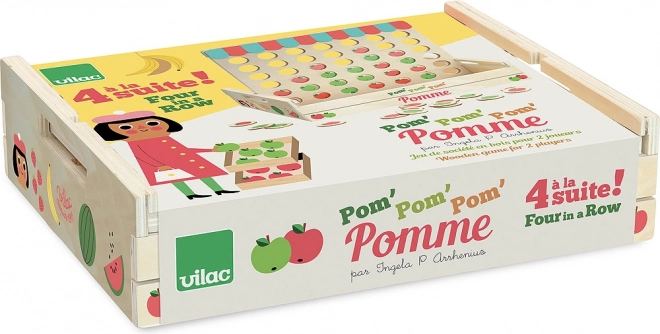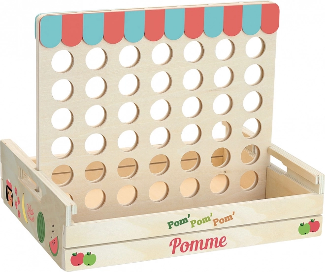 Drewniane kółko i krzyżyk z czerwonymi i zielonymi jabłuszkami to idealna gra do domu lub w podróż. W tej grze dla dwóch graczy wygrywa ten, kto jako pierwszy ułoży rząd czterech jabłek w tym samym kolorze. Odpowiednie dla dzieci od 5 lat.