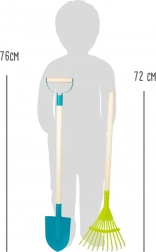 Szpadel ma 76 cm, grabie 72 cm. Rozmiar dostosowany do dziecięcych dłoni zapewnia bezpieczną i radosną pracę w ogrodzie.