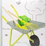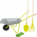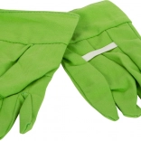 Zestaw zawiera łopatę, grabie i bawełniane rękawice, co czyni z niego idealny pakiet dla małych pomocników ogrodowych.