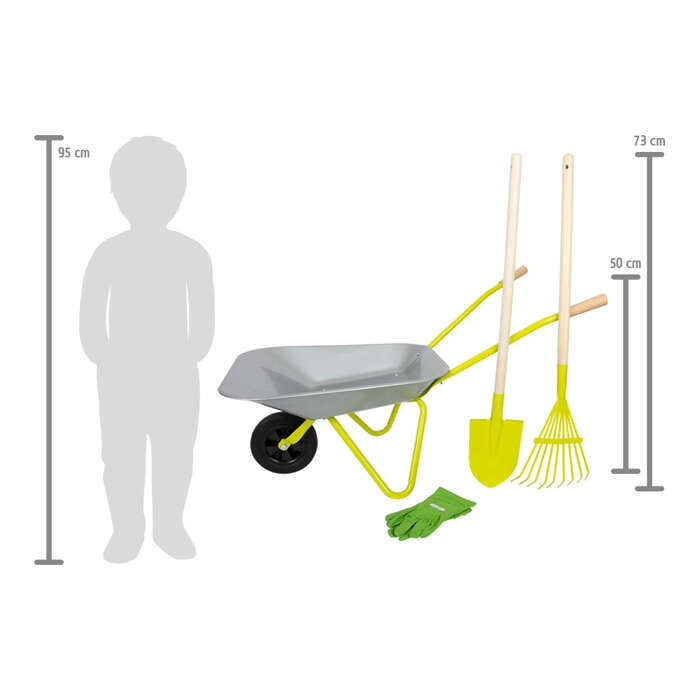 Odkryj wysokiej jakości dziecięcy zestaw ogrodniczy SMALL FOOT z metalową taczką, łopatą, grabiami i bawełnianymi rękawicami – idealny dla małych pomocników w ogrodzie. Zestaw jest w większości metalowy, solidny, bezpieczny i zapewnia świetną zabawę przy prawdziwych pracach ogrodowych. Stabilna metalowa konstrukcja, taczka ok. 10 l / udźwig do 15 kg oraz ergonomiczne drewniane uchwyty ułatwiają obsługę i wspierają rozwój umiejętności dzieci.