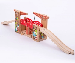 Podwójny most podnoszony od Bigjigs Rail pozwala łatwo podnieść obie strony, zapewniając wystarczająco dużo miejsca na równoczesny przejazd dwóch pociągów. Ten most jest kompatybilny z większością innych marek drewnianych kolei.