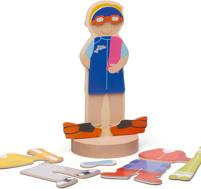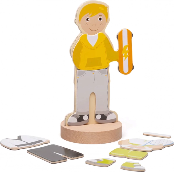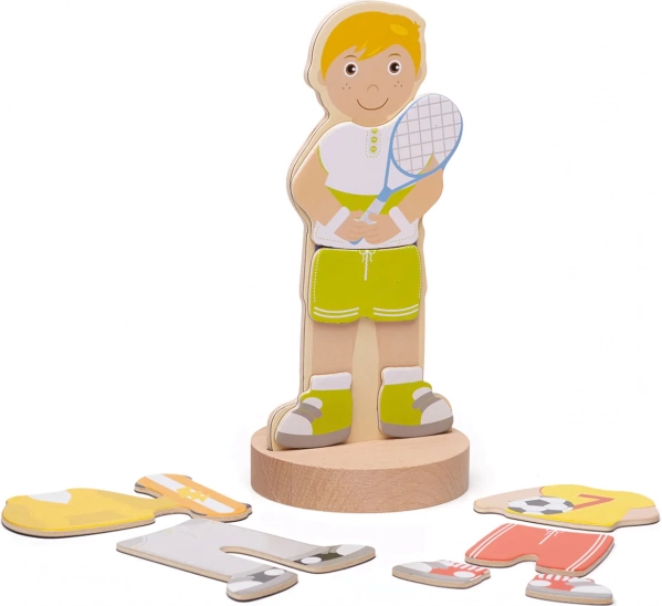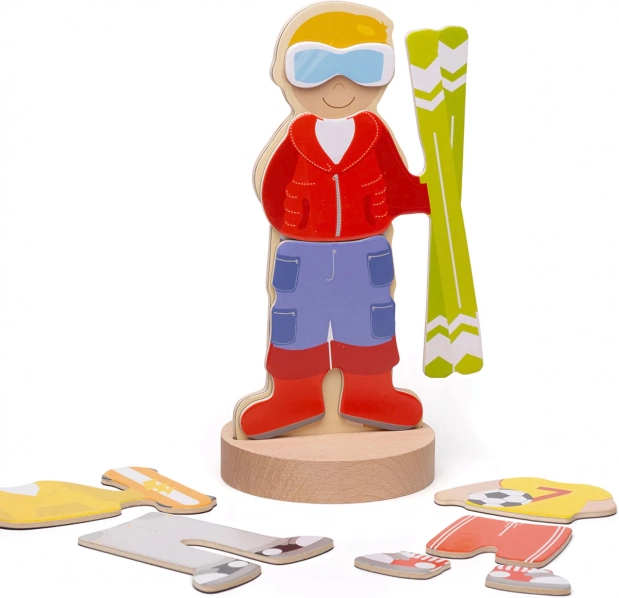 Magnetyczna układanka–przebieranka łączy zabawę i naukę. Dzięki siedmiu sportowym kombinacjom mali twórcy mogą mieszać i dopasowywać ubranka, tworzyć unikalne stroje oraz opowiadać historie o swoich bohaterach. Solidne pudełko z magnetycznym wieczkiem trzyma wszystkie elementy razem – idealne w podróży i w dziecięcym pokoju.