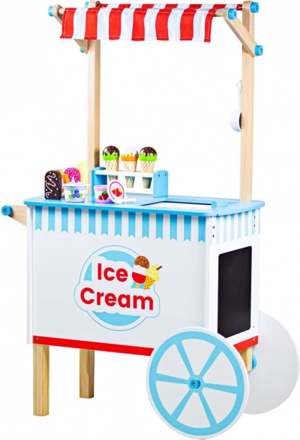 - Wózek, 6 lodów, 9 lodów na patyku, 2 kubeczki, 2 łyżeczki, gałkownica (łącznie 17 szt. akcesoriów)