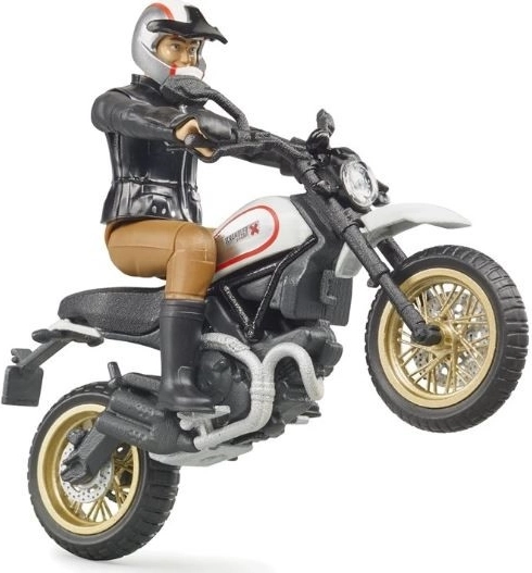 Model Bruder z linii BWORLD oferuje autentyczne wrażenia z jazdy. Motocykl Scrambler DUCATI Cafe Racer zachwyca realistycznymi detalami, od projektu silnika po złote obręcze, a jeździec z w pełni ruchomymi stawami umożliwia dynamiczne pozy i scenariusze akcji. Solidne wykonanie gwarantuje długą żywotność i bezpieczną zabawę.