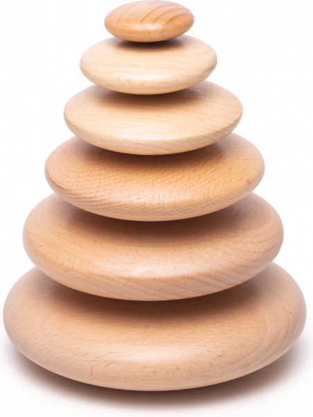 Ta otwarta, balansująca gra bez instrukcji zachęca dzieci do własnej fantazji: mogą budować wieże, tworzyć wzory, sortować według wielkości lub zrobić z kamyków stylową dekorację w pokoju. Naturalny wygląd i gładka powierzchnia drewna zapewniają przyjemne doznania dotykowe oraz spokojną, skoncentrowaną zabawę.