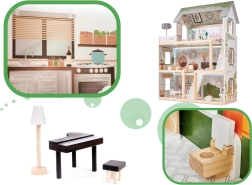 Zabawa domkiem rozwija dziecięcą wyobraźnię, małą motorykę oraz umiejętności społeczne dziecka.