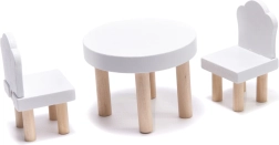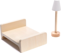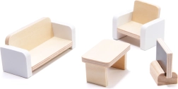 W zestawie znajdziesz 16 elementów mebli: stół, krzesła, łóżko, lampę, fotel, sofę, stolik kawowy, telewizor, pianino, ławkę, leżak, parasol, prysznic, umywalkę i toaletę.