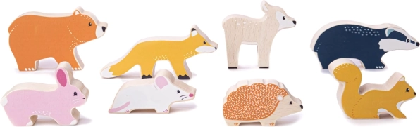 Zabawny i edukacyjny zestaw drewnianych leśnych zwierzątek oferuje nietuzinkowy sposób rozwijania umiejętności dziecka. Dzięki starannemu projektowi każdej figurki dzieci nie tylko poznają kształty i kolory, ale także trenują małą motorykę, układając zwierzątka jedno na drugim. Produkt wykonany jest z drewna w 100% certyfikowanego FSC, co gwarantuje, że jego produkcja jest przyjazna dla środowiska. Kupując ten zestaw, pomagasz chronić lasy i wspierasz zrównoważone gospodarowanie zasobami naturalnymi.