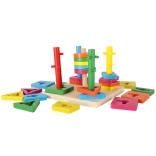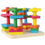 Ta drewniana edukacyjna zabawka jest idealna do rozwoju umiejętności motorycznych i poznawczych Twojego dziecka. Intensywne kolory i różne kształty zachęcą dziecko do zabawy i nauczą je rozpoznawać kształty i kolory.