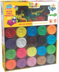 • 20 kubeczków masy w różnych kolorach do niekończącego się tworzenia