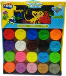 Odkryj kreatywny świat z tym dużym zestawem masy plastycznej MODELO – idealnym dla dzieci, które lubią tworzyć, ugniatać i modelować. W opakowaniu znajdziesz 20 kubeczków kolorowej masy oraz bogate akcesoria (dłutka, foremki, wyciskarki), które wspierają małą motorykę, kreatywność i wyobraźnię.