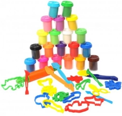 20 kubeczków masy, dłutka, foremki, wyciskarki