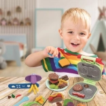 Stwórz zestaw pysznie wyglądających hamburgerów z MODELO Wesoła modelina – zawiera specjalne foremki i masę do modelowania dla łatwej produkcji.