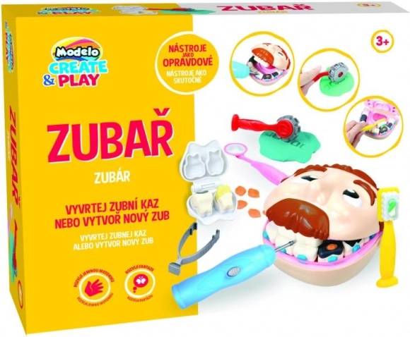 Zamień dzieci w małych dentystów z kreatywnym zestawem Modelo. Wymodeluj zęby, wywierć ubytek, załóż aparat ortodontyczny i załataj plombą – wszystko dzięki dobrze plastycznej masie, która nie barwi i nie wysycha. Zabawa rozwija małą motorykę, kreatywność i pomaga oswoić strach przed dentystą.