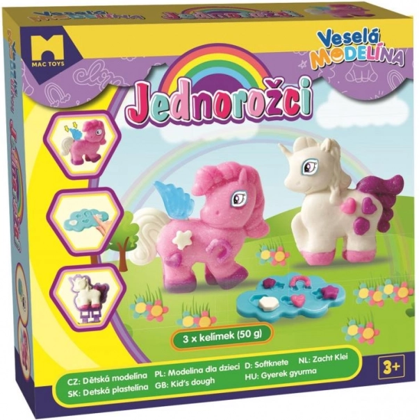 Rozkręć wyobraźnię z zestawem MAC TOYS wesoła ciastolina – jednorożce: trzy kubeczki po 50 g, kolorowe foremki i narzędzia do tworzenia magicznych postaci. Ciastolina jest łatwa w formowaniu i nie wysycha, idealna do wielokrotnej zabawy i rozwoju motoryki małej.