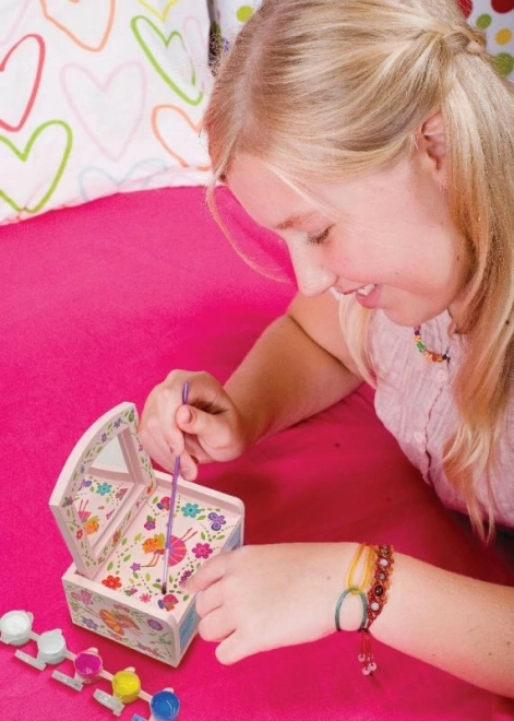Odkryj radość tworzenia z tą wspaniałą kosmetyczną szkatułką. Ten zestaw pozwoli Ci pomalować i ozdobić własną szkatułkę na drobne skarby, idealną dla kreatywnych dzieci.