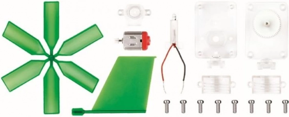 Zawiera łopatki, silnik/generator, przekładnie i elementy łączące. Dzieci wypróbują podstawowy montaż i zrozumieją związek między ruchem a elektrycznością.