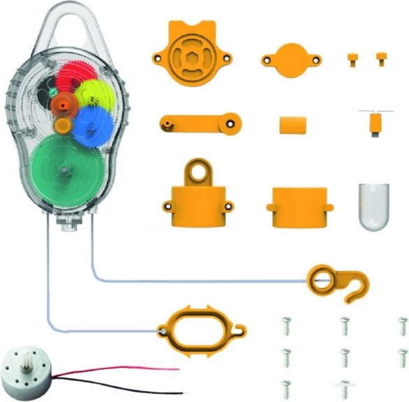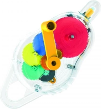 - Przezroczysty korpus z kolorowymi przekładniami