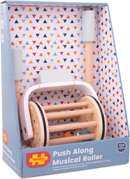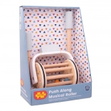 Pięknie wykonany muzyczny wałeczek z drewna 100% FSC® wspiera nie tylko motorykę, ale także umiejętności sensoryczne Twoich dzieci. Dzięki jego ruchowi i dźwiękowi dzwoneczka, który kołysze się pomiędzy drewnianymi listwami, dziecko rozwija swoje umiejętności słuchowe. Zabawka składa się z kombinacji drewna naturalnego i kolorowego, przy czym kolory stymulują wzrokowe postrzeganie.