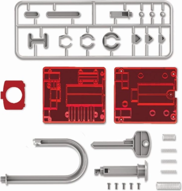 Design kłódki umożliwia obserwację wszystkich widocznych komponentów i zrozumienie ich funkcji.