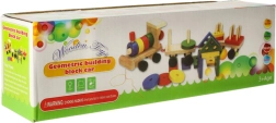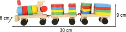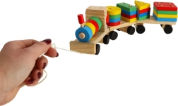 Ten wysokiej jakości drewniany pociąg łączy zabawę i naukę w jednym. Dzięki kolorowym klockom i układaniu na kołkach dzieci rozwijają małą motorykę, koordynację ręka–oko oraz kreatywność. Zabawka jednocześnie pomaga w rozpoznawaniu kształtów i kolorów oraz wspiera cierpliwość i logiczne myślenie.