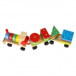 Uroczy drewniany pociąg z lokomotywą i dwoma wagonikami to świetna zabawka dla dzieci od 3 lat. Zawiera kolorowe klocki i sorter do ćwiczenia motoryki, naukę kształtów i kolorów oraz rozwój logicznego myślenia. Pociąg ma ruchome koła i sznurek do ciągnięcia, dzięki czemu dzieci zyskają dużo ruchu i twórczej zabawy.