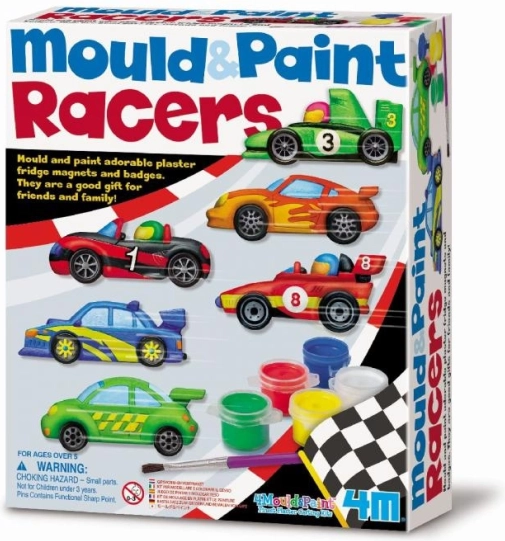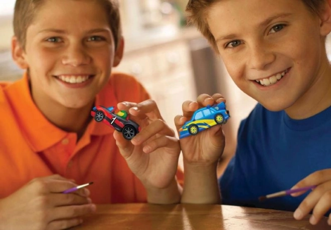 Ten zestaw pozwala dzieciom wyrazić swoją kreatywność i stworzyć własne samochody wyścigowe przy użyciu gipsu i farb.