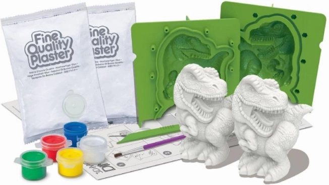 Ten zestaw umożliwia formowanie, malowanie i projektowanie własnych trójwymiarowych modeli dinozaurów, takich jak T‑Rex. Idealny dla kreatywnych osób i miłośników dinozaurów.