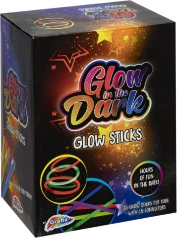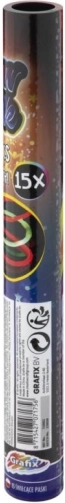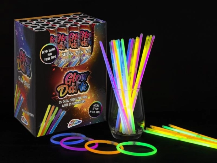 Uniwersalny zestaw zawiera 15 świecących pałeczek w praktycznej tubie oraz 15 złączek do łatwego tworzenia świecących bransoletek. Łatwa aktywacja przez zgięcie i wstrząśnięcie – po kilku minutach rozświetlą się.