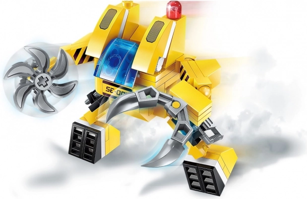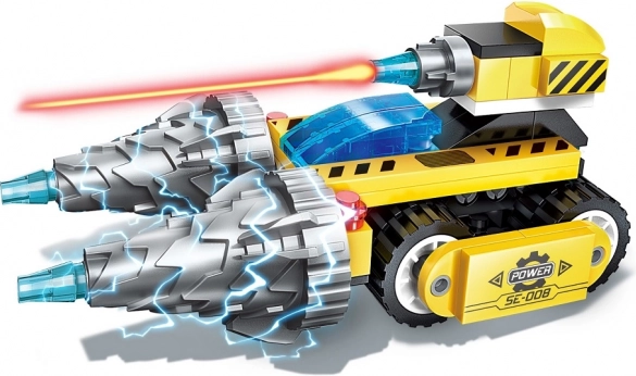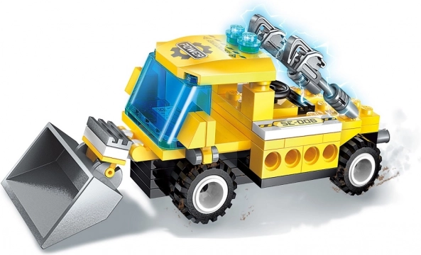 - 8 mini zestawów: Ciężarówka Spanker, Dźwig Hercules, Walec Thunder, Koparka Talon, Śmigłowiec Dragon, Spychacz Blade, Robot Ninja, Maszyna wiertnicza Storm