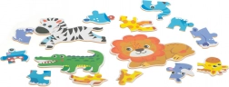 Większe, łatwe do chwytania elementy z wesołymi zwierzątkami wspierają małą motorykę i samodzielne układanie.