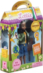 Lottie Aktywistka Meg to mała, lecz odważna bohaterka, która inspiruje dzieci do pewności siebie i wyrażania własnych opinii. Jej strój nawiązuje do postawy obywatelskiej – żółta koszulka z napisem „Kids Voices Matter”, zielona kurtka z przypinką „Stand Up”, dżinsowe szorty i białe tenisówki.