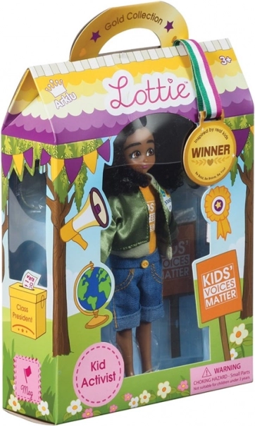 Poznaj lalkę Lottie Aktywistka Meg – inspirowaną prawdziwą dziecięcą aktywistką Mari Copeny. Zachęca dzieci, by nie bały się zabierać głosu i zmieniać świat na lepsze. Lalka ma artykulowane ciało, miękkie, premium włosy, samodzielnie stoi i jest wykonana z bezftalanowego winylu. W zestawie znajdziesz stylowe akcesoria, w tym megafon i transparent.