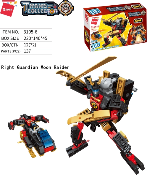 Poddaj się wyobraźni i kreatywności z zestawem konstrukcyjnym Qman Strażnicy gwiezdnego rdzenia 6w1. Ten zestaw zawiera łącznie 908 wysokiej jakości plastikowych elementów, które pozwolą Ci stworzyć niesamowite modele. Każdy zestaw oferuje dwie opcje montażu, zapewniając jeszcze więcej możliwości gry i budowy. Kombinując elementy, możesz zbudować duży, robotyczny model o różnym stopniu trudności. Kompatybilność z innymi markami zapewnia rozszerzenie świata zabawy.