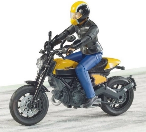 Ten szczegółowo wykonany model motocykla Scrambler DUCATI Cafe Racer od BRUDER jest idealny dla małych motocyklistów i kolekcjonerów. Realistyczne opracowanie, od widocznych elementów silnika po kształt siedzenia, uzupełnia w pełni ruchoma figurka jeźdźca, która pozwala na naturalne pozycje jazdy i dynamiczne ustawienia.