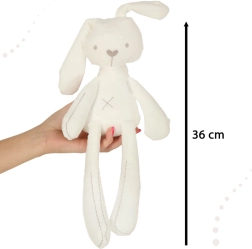 Delikatne haftowane detale i neutralny kolor czynią królika uniwersalnie atrakcyjnym.