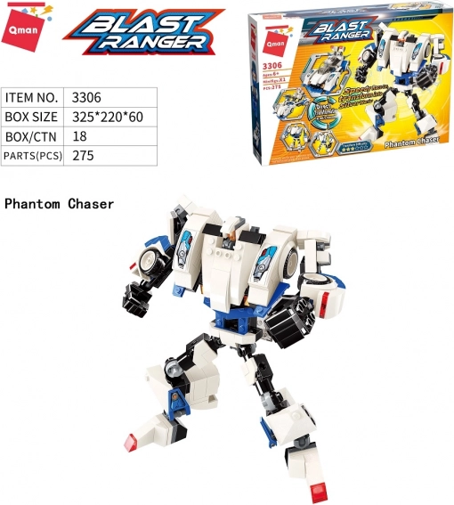 Zestaw konstrukcyjny Qman Blast Ranger 3306 Phantom Chaser oferuje możliwość łatwego przemieniania robotów w pojazdy i z powrotem. Jest to wyjątkowy model z dużą różnorodnością.