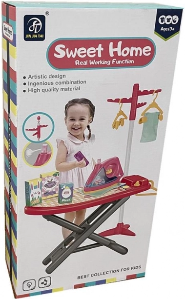 Zabawny zestaw dla małych gospodyń i gospodarzy zapewnia realistyczne prasowanie w bezpiecznej formie. Zawiera plastikową deskę do prasowania o wysokości 50 cm, żelazko ze światłem i efektami dźwiękowymi, wieszak, wieszaki ubraniowe i dodatki do kreatywnej zabawy w dom.