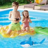 Czarny pilot z niebieskimi przyciskami umożliwia łatwe kontrolowanie rekina i jego ruchów.
