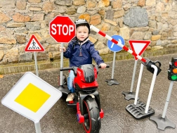 Dzięki zestawowi dziecięcych znaków drogowych zamienisz każdą przestrzeń w zabawne i edukacyjne miasteczko ruchu. Wysokość 81 cm zapewnia dobrą widoczność i stabilność, dlatego nadają się do użytku domowego i plenerowego. Prosty montaż pozwala rozpocząć zabawę w kilka chwil.