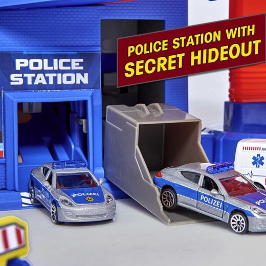 W zestawie znajdziesz strefy tematyczne, takie jak posterunek policji z ukrytą skrytką, stanowisko straży pożarnej, stacja paliw i myjnia. Dzięki rozbudowanej przestrzeni parkingowej dla nawet 35 aut i sprytnemu układowi zestaw idealnie nadaje się dla rodzeństwa i przyjaciół. Świetny prezent, który wspiera motorykę małą, wyobraźnię oraz zabawę kooperacyjną.