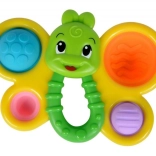Ta lekka i bezpieczna grzechotka w kształcie motyla została zaprojektowana z myślą o małych dziecięcych rączkach. Kolorowe skrzydełka z różnymi powierzchniami zachęcają do odkrywania, elementy grzechoczące stymulują słuch, a wygodna rączka ułatwia trzymanie i samodzielną zabawę.