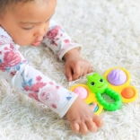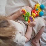 Kompaktowy rozmiar mieści się w wózku i torbie na przewijanie – idealna zabawka do zajęcia malucha gdziekolwiek.