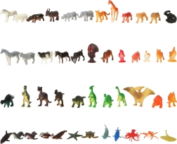Ten duży zestaw plastikowych figurek obejmuje 4 grupy tematyczne – dinozaury, zwierzęta safari, morskie stworzenia oraz zwierzęta gospodarskie. Dzięki realistycznym detalom figurki świetnie sprawdzają się w swobodnej zabawie, kolekcjonowaniu i edukacji. Dzieci mogą tworzyć własne opowieści, poznawać środowiska i zwyczaje poszczególnych gatunków oraz poszerzać wiedzę o przyrodzie.