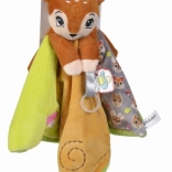 Wyposażony w grzechotkę i pierścień do przymocowania smoczka. Przytulaczek wspiera zmysłowe doznania i interaktywną zabawę.